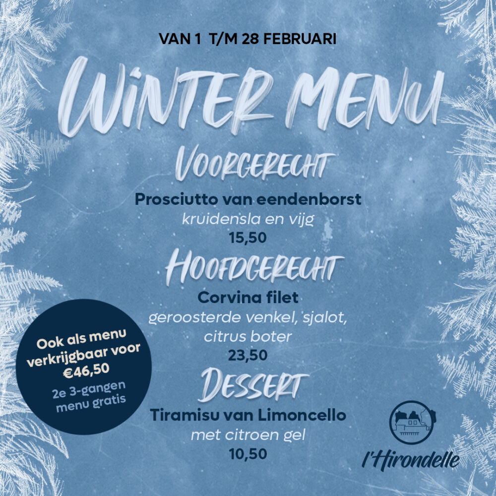 *Dit menu is ook geldig i.c.m. onze 2e 3-gangenmenu gratis actie.